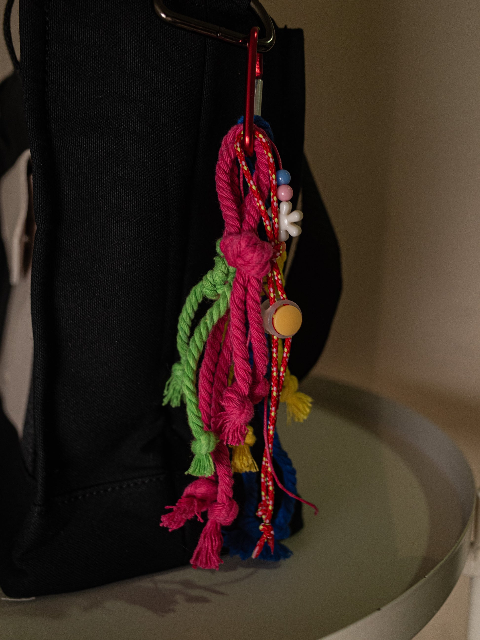 Elevate your everyday accessories with our Knot Charm collection. Handcrafted from colorful, durable rope, these playful charms are perfect for adding a fun and bold touch to your bag, keys, or even as a decorative accent in your home. Each charm features intricate knots, vibrant tassels, and unique beads, making them a stylish statement piece wherever you go. Lightweight and versatile, the Knot Charm adds a splash of personality to your daily routine while keeping your essentials secure.